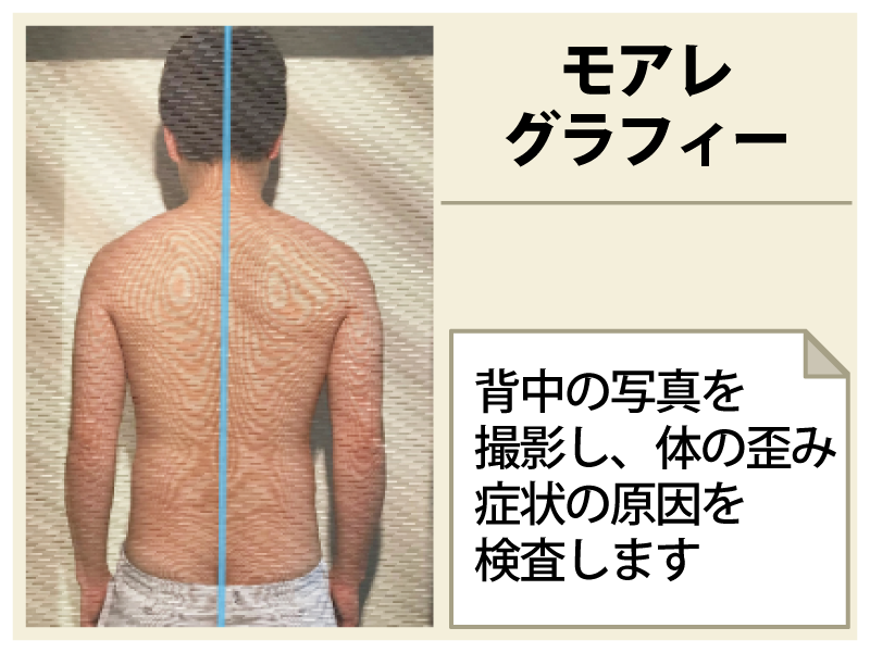 モアレ(フランス語で木目)を意味する身体の歪みを映す特殊な器具を利用した検査です。