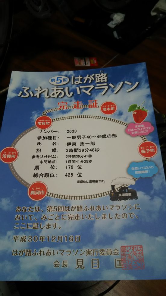 昨日は研究の一環でフルマラソンを走ってきました。人生二回目のフルマラソンで3時間半切りを目指したのですが結果は轟沈。来年の3月まで持ち越しです。しかし転んでもただでは起きない男、伊東。収穫はありました。痛みでお悩みの患者様のご来院お待ちしております。