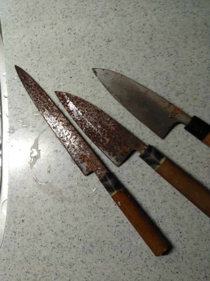 しばらく釣りにも行けずに放ったらかしにしていた包丁がひどい事になっていました
