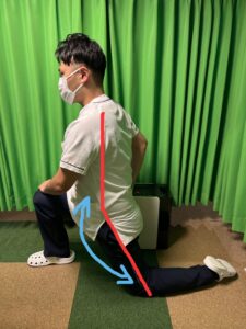 片膝を立ててもう一方の足を後ろに伸ばし、体を前に倒します。