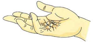 - 手のひらに硬いしこりや盛り上がりを感じる