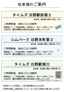 全ての駐車場で「駐車利用証明書」を来院前に発行し、来院時に受付にお渡しください!