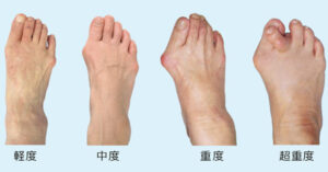 女性に好発する症状で放置していると加齢とともに変形の増悪が見られます。