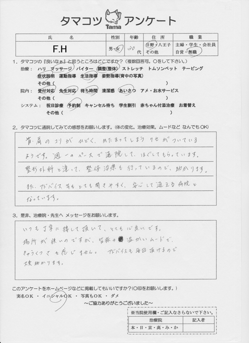 首・肩のコリがひどく、かたまってしまうクセがついているようです。
