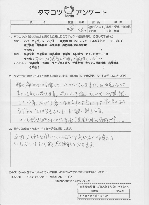 治療院・先生へメッセージ
