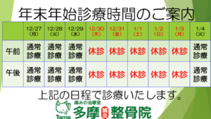 ※からだケア整骨院スーパー三和院:水曜定休のため12/29から休診となります。