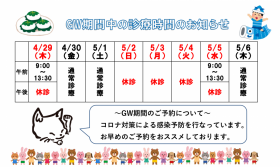 休診日:5月2日~4日 → 5月3日~5日 詳しくは各院にお問い合わせください。