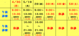 GWの診療時間について