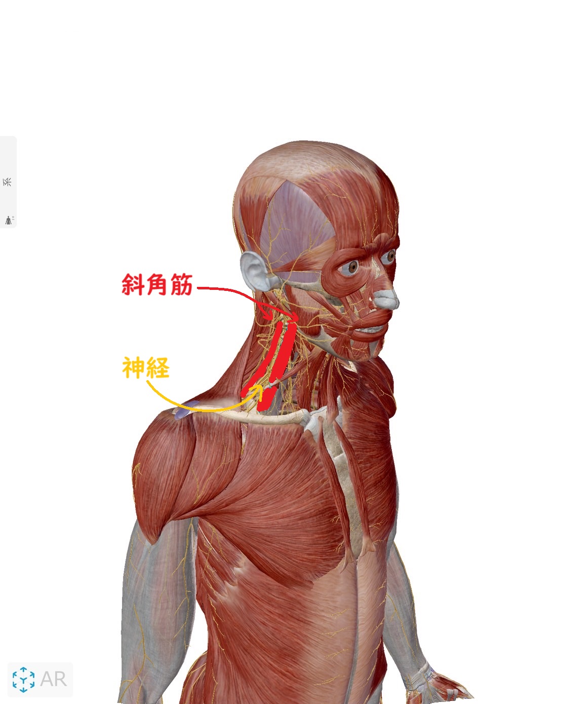 斜角筋症候群とは前斜角筋、中斜角筋、第一肋骨によって構成される三角形の隙間を通る神経が圧迫されて出る症状です。
