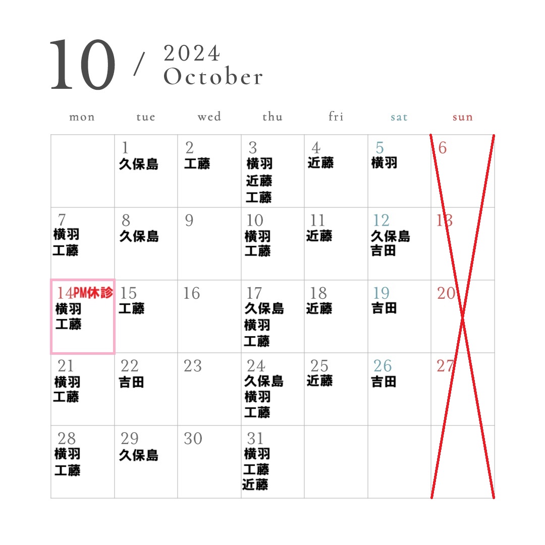 10月の各スタッフのお休みはこのようなスケジュールになっております!