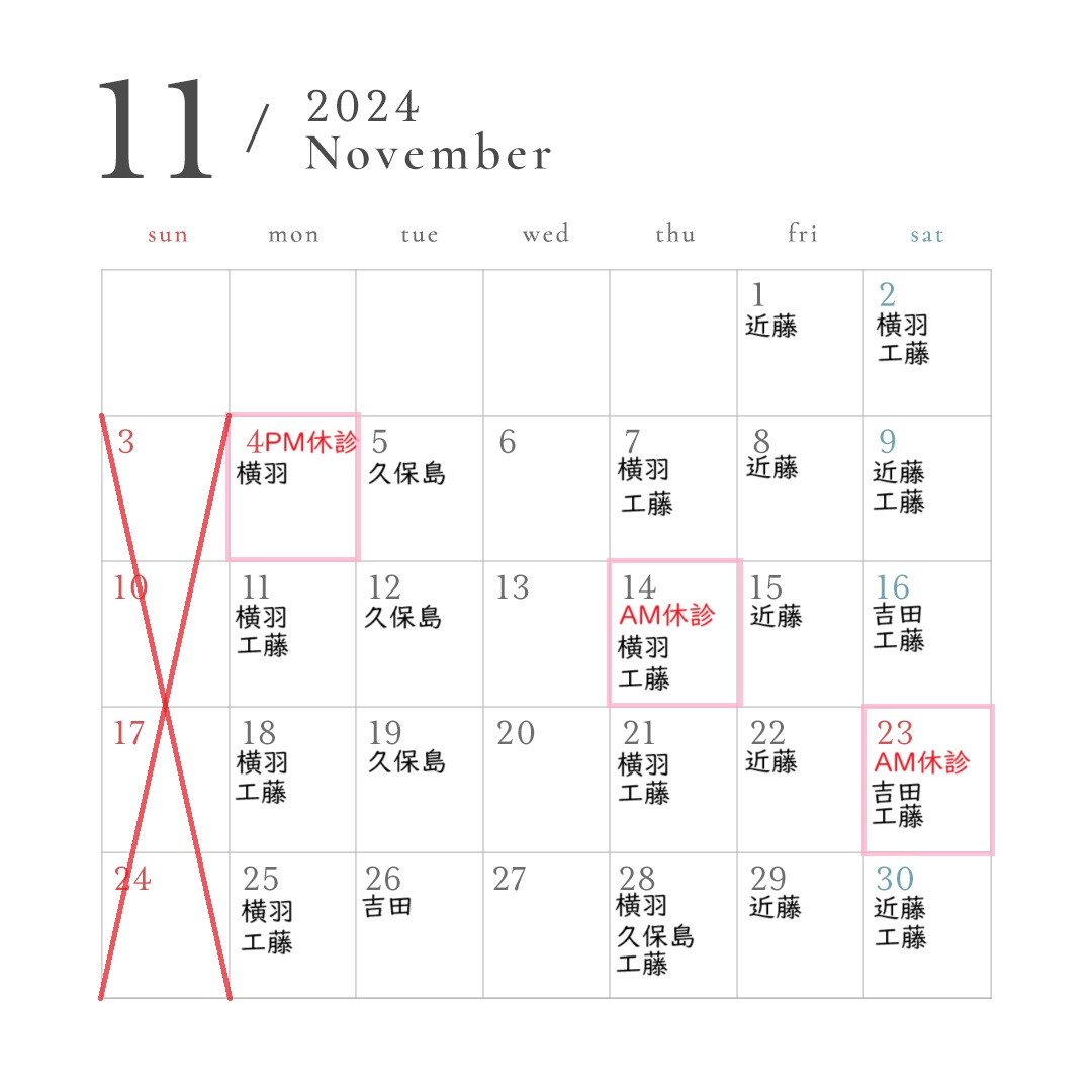 11月の各スタッフのお休みはこのようなスケジュールになっております!