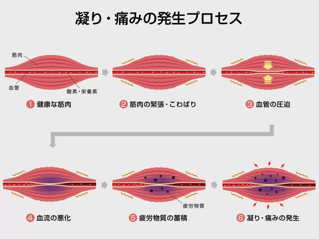 スポーツ後の筋肉ケアは、パフォーマンスを維持・向上させるために欠かせません。腰痛や肩こり、膝の痛みを放置すると、体の歪みが進行し、さらに大きな障害につながる可能性があります。