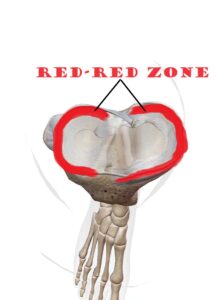 半月板の縁には血管が入り込んでいるred-red zone、最内は血管が入り込まないwhite-white zoneがあり、この二つの間にred-white zoneが存在します。損傷の仕方には様々な形状があります。なかでもwhite-white zoneの断裂では血管が入り込まないため、組織の回復があまり見込めません。この状態を放置していると、膝の動きが硬く、狭くなります。さらに関節のバランスが崩れた状態が続くことで、変形性関節症になる可能性が高くなります。変形性膝関節症についてはこちら>変形性膝関節症