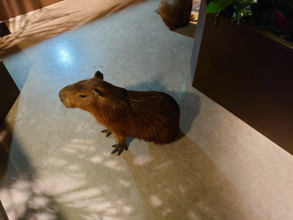 散歩中のカピバラだったりウロチョロしているアルマジロだったり、亀だったり