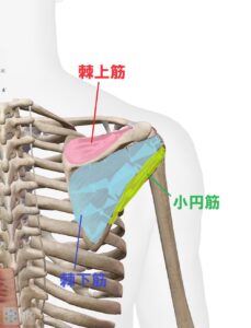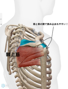 腕を動かすとき、冒頭で紹介した第二肩関節の間で棘上筋は締め付けられやすいです。