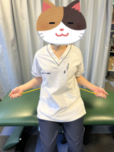 (負荷を上げようとして硬いゴムチューブを用意するのはおススメしません!!棘上筋以外の筋肉に効果が出てしまいます。)Amazonで購入する場合はこちら!⇒ゴムチューブ