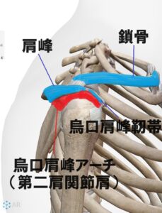 肩峰・鎖骨・烏口肩峰靭帯で構成されているアーチを、烏口肩峰アーチといいます。