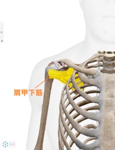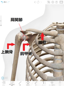 肩関節は肩甲骨・上腕骨・鎖骨の3つの骨から構成されています。