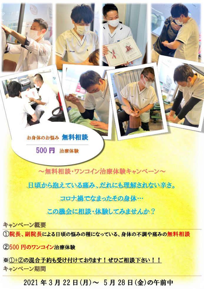 無料相談会と500円治療体験 2021.03.18 2023.08.27 スタッフブログ クリックありがとうございます!! ★ご予約方法★ 電話で直接ご予約の方は 042-644-3330 にご連絡下さい。その際キャンペーンの広告を見た旨をお伝えください。 ネットからのご予約の方は、ご予約内容の選択|多摩鍼灸整骨院 京王八王子院 (airrsv.net)をクリックで予約ページに飛びます。 尚、診療の状況により、ご予約の時間の変更をこちらからお願いすることがあるかもしれません。予めご了承ください。 記事のタイトルとURLをコピーする ラーメン放浪記パート③ 前の記事 ある休日に・・・ 次の記事