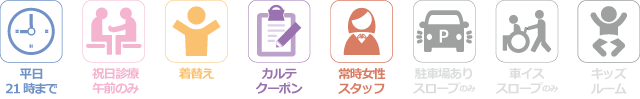土曜9:00 – 17:00 祝日9:00 – 13:30 休診日 :日曜