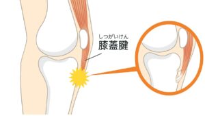 太ももの前の筋肉(大腿四頭筋)が硬くなることで、膝下の骨を強く引っ張ってしまいます。