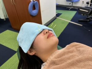 治療は、目や鼻の周囲の反応点(迎香という鼻詰まりに効果的なツボ)に鍼をし、お腹を温めて寝ていただくだけ!