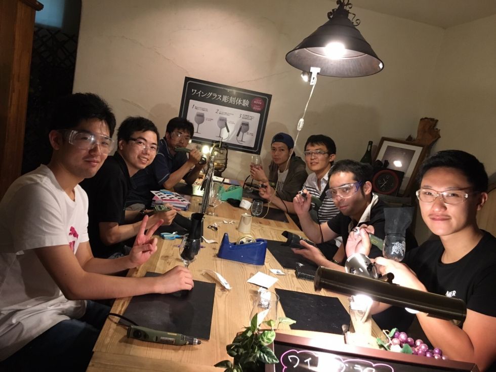 みなみ野院の石杜先生(元たこ焼き屋さん店長!)が作るたこ焼きと 高幡院の松本(実は関西人)がつくる西と東の地味な戦い。。 味はいかかでしたか? 次の日はメインイベントの『サンドブラスト体験』、おしゃれなお店で集中しすぎて終始無言でした(笑)
