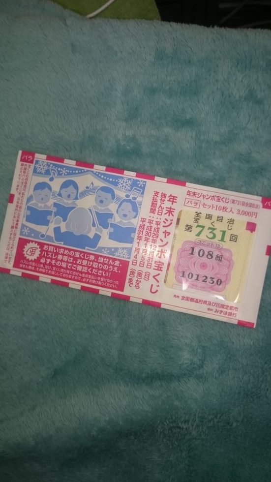 そいえばこの間、人生初の宝くじを買っちゃいました♪
