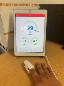当院ではパルスオキシメーターを使い、動脈血液中の赤血球ヘモグロビンが酸素と