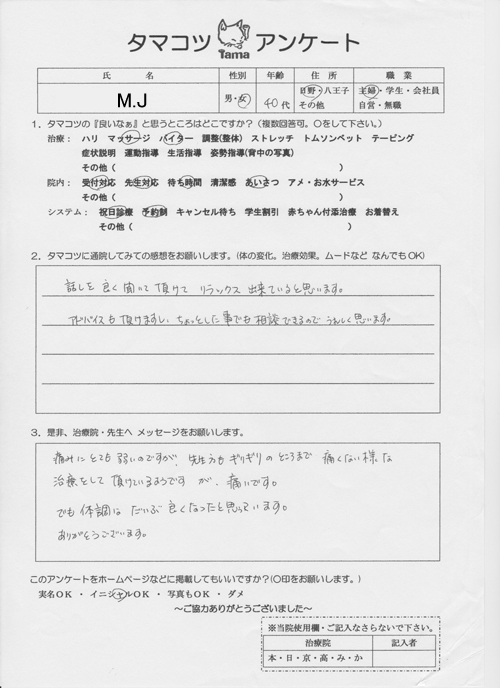 話を良く聞いて頂けてリラックス出来ていると思います。