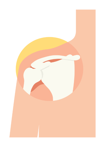 なんらかの原因で上腕骨の下方への滑り運動が阻害され、上腕骨大結節が肩峰下を通過出来なくなる状態が肩峰下インピンジメントです。動きが阻害され、肩峰下にあるインナーマッスル(棘上筋、棘下筋)や肩峰下滑液包に炎症を起こし痛みます。