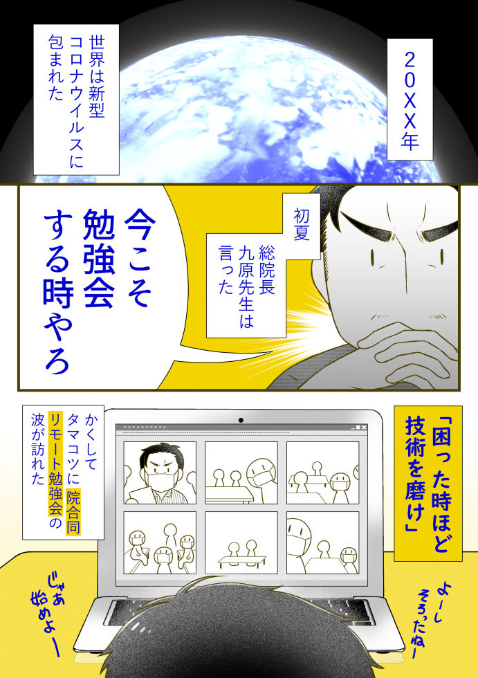 『リモート勉強会で、九原先生が動きやすいようにスタッフ一同見えないところでバタバタ動いてました。たのしかったです』
