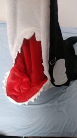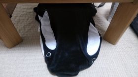 足元が寒い時には良く、サメの口から足をいれてます。