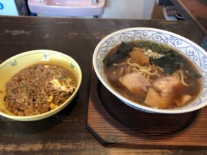 次に半チャーハンですが、これも焦がし醤油味でしっとり濃いめのチャーハンでした。