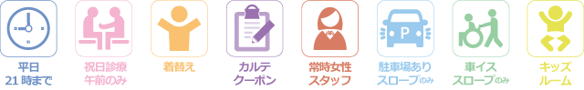 土曜9:00 – 17:00 祝日9:00 – 13:30 休診日 :日曜